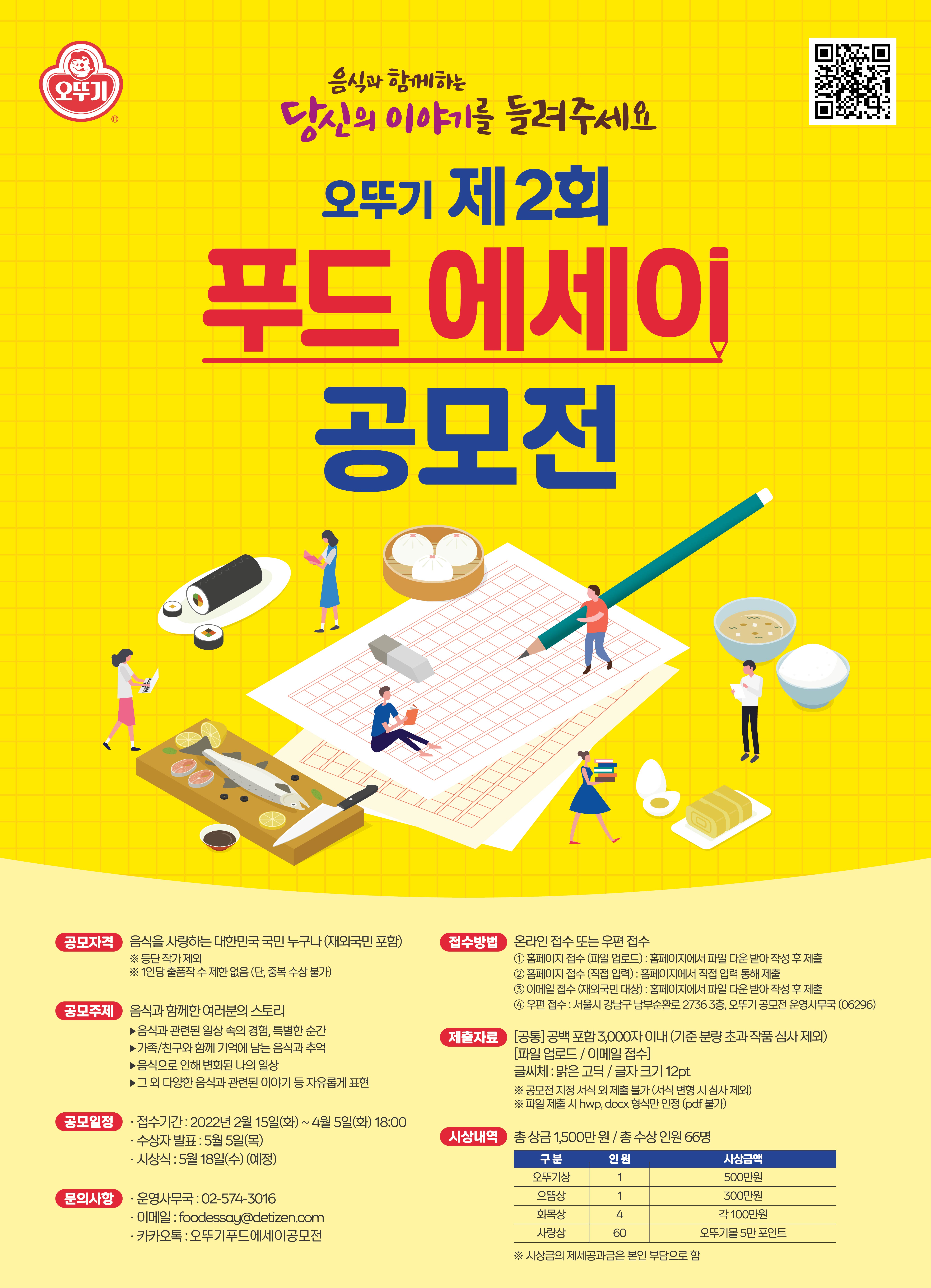 안녕하세요! 오뚜기 제2회 푸드 에세이 공모전 운영사무국입니다.