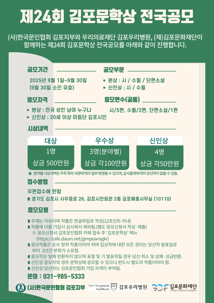 (사)한국문인협회 김포지부와 우리의료재단 김포우리병원, (재)김포문화재단이 함께하는