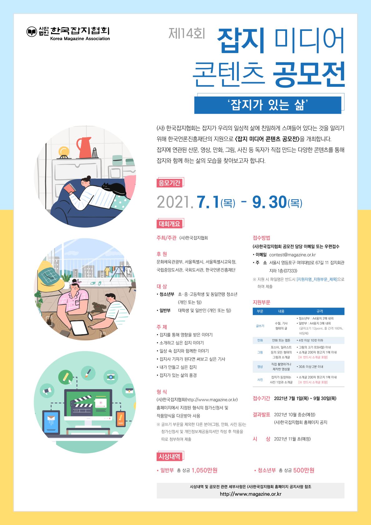 ❙ 접수방법 : ()한국잡지협회 공모전 담당 이메일(contest@magazine.or.kr또는